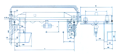 如帶有馬達(dá)抓斗作吊具,則可裝卸和搬運(yùn)散粒物品。本產(chǎn)品適用起重量1、2、3、5、10噸,跨度 7.5-